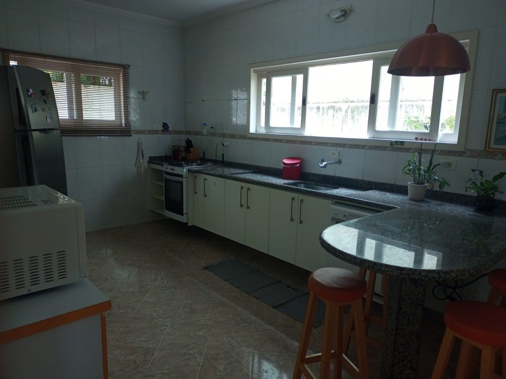 Excelente Casa em condomínio fechado na Granja Viana!!! Localizada em via de acesso ao km 30 da Rodovia Raposo Tavares; Casa principal: Living para 2 ambientes, salas de estar e jantar (aberta para terraço e vista para piscina; Mezanino utilizado como sala de tv; 3 dormitórios, todos com terraços, master com banheira; Copa cozinha com planejados; Lavanderia; Lavabo; 2 casa: Térreo: Sala, banheiro, dois dormitórios. Piso inferior: cozinha, dormitório, banheiro; Área de lazer com piscina; Varanda com churrasqueira; Aquecimento elétrico (tem instalação em cobre para futura energia solar) 4 vagas de autos, sendo 2 cobertas;