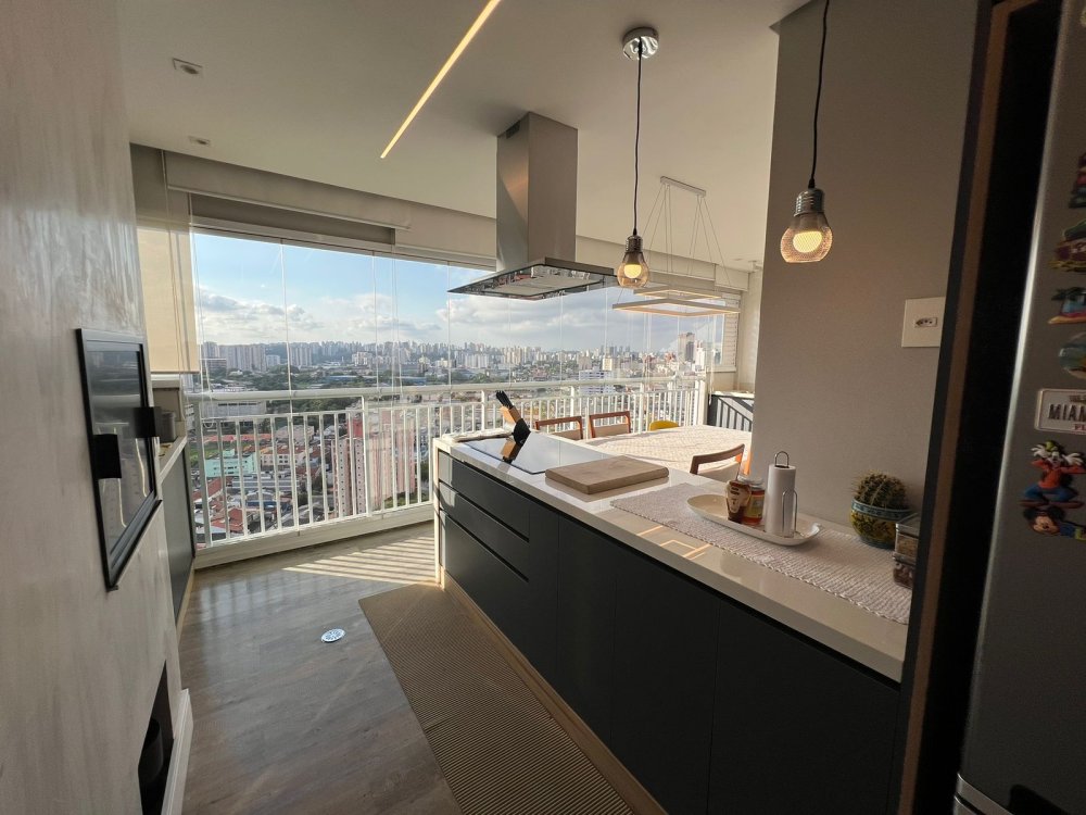 sendo 2 banheiros incluso toda marcenaria, ar condicionados luminarias, forno e microondas embutidos, com varanda goumert com churrasqueira