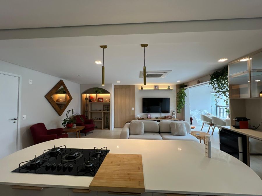 * Recebendo amigos e familiares em um amplo living com sacada e churrasqueira, ideal para momentos de descontração com uma vista panorâmica da cidade.